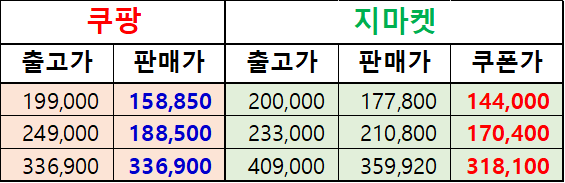 쿠팡보다 1~2만원 수준 저렴하게